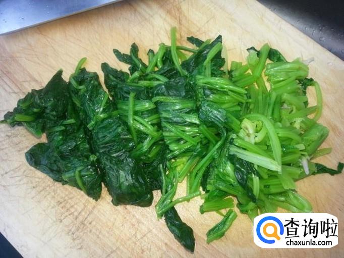 接着用热水烫一下菠菜,注意不要烫的太熟了。