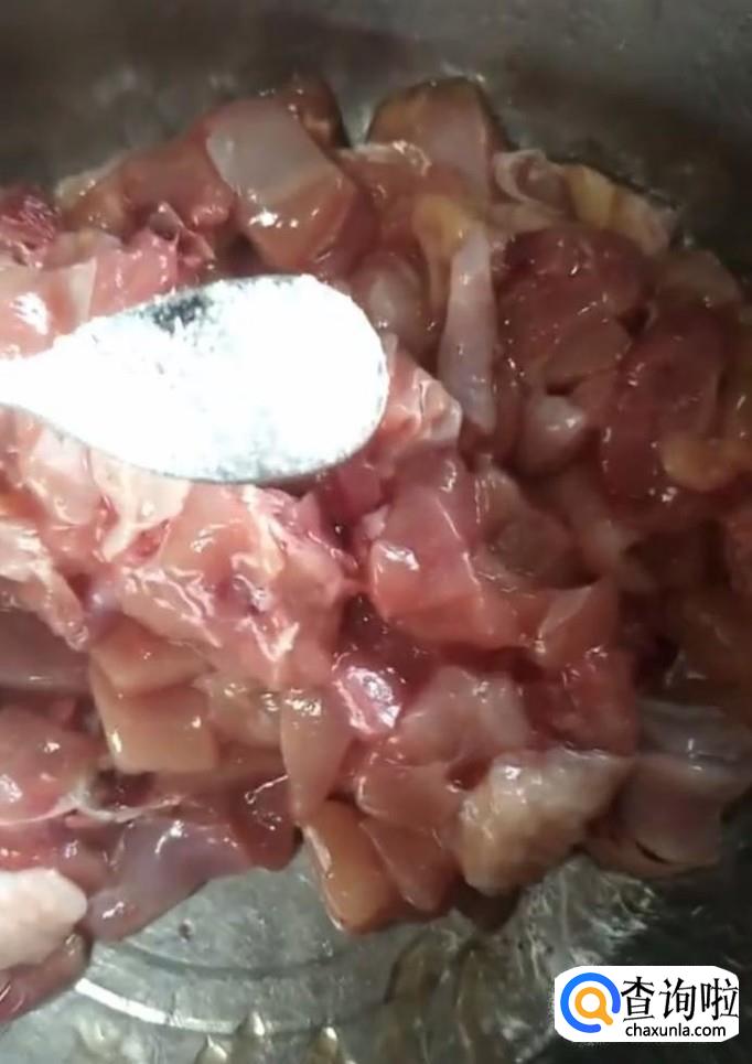 首先我们将鸡肉剁成小块,放入盆中,加入适量的盐,味精,鸡精,料酒,抓拌均匀,腌制十分钟