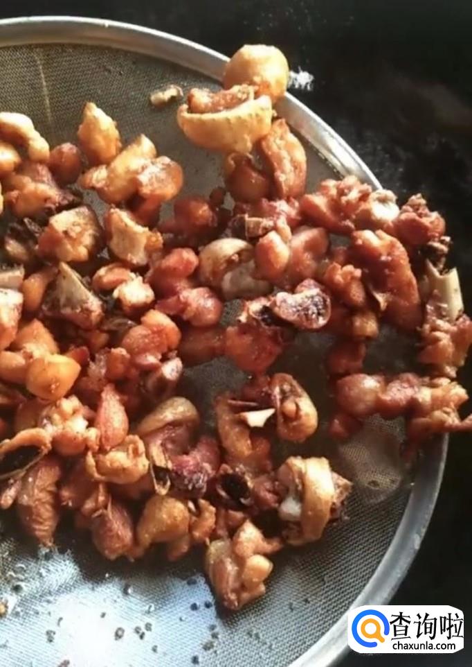 然后我们起锅烧油,油温六成热,下入腌制好的鸡块,炸至外表金黄捞出备用