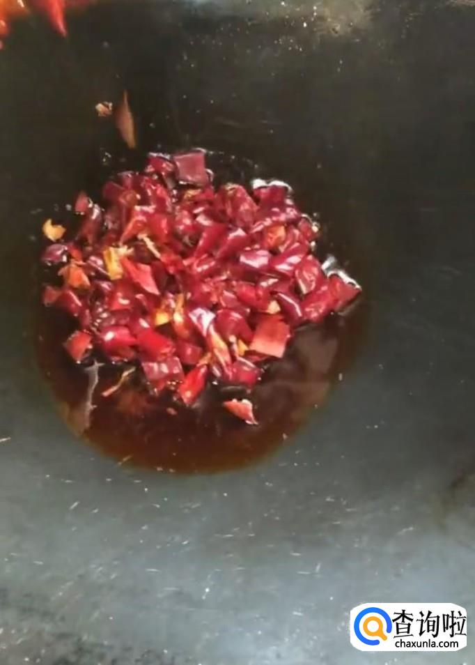 接着我们把锅清洗干净,放入少许红油,油热放入川椒丁,麻椒,葱蒜,杭椒丁,大火翻炒,炒出香味