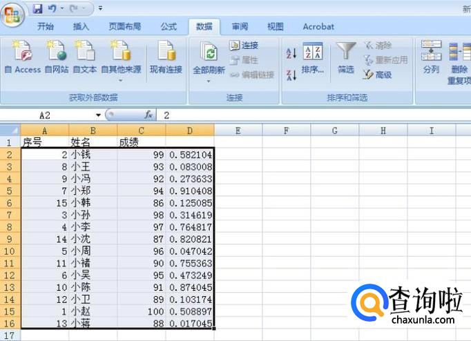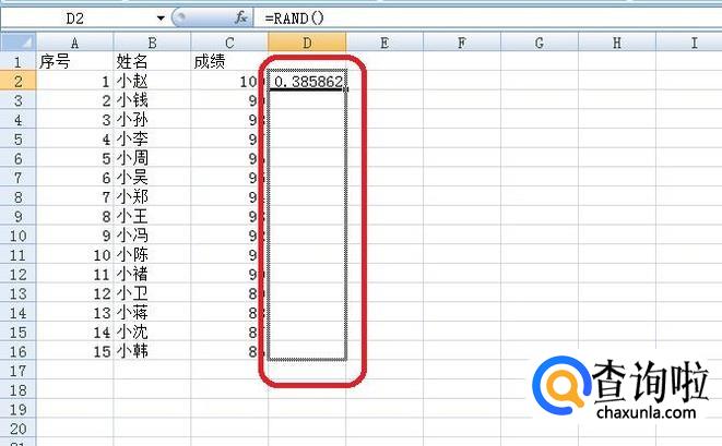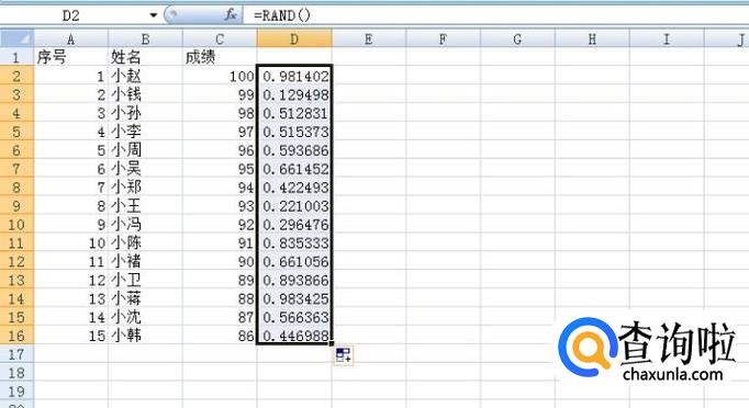 如图所示,把该单元格下拉填充,则插入一列随机值。