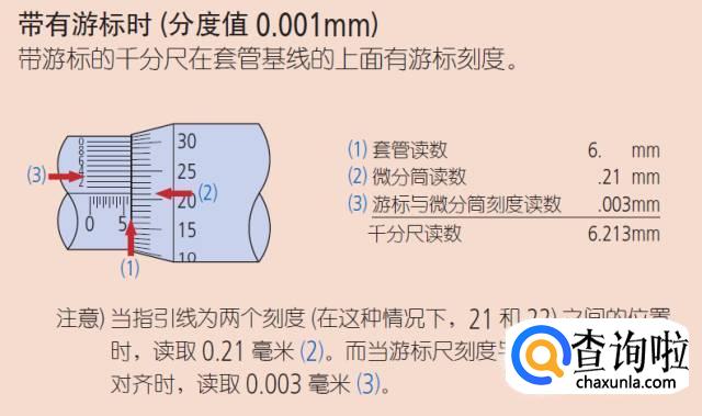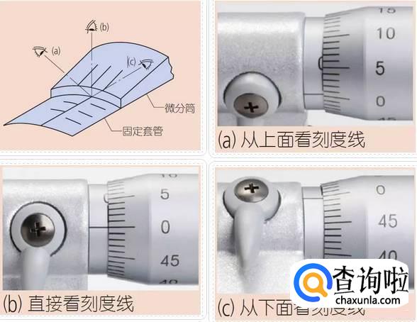 3、读取微分筒刻线时直视基准线。如果从某个角度看刻度线,由于视觉误差将不会读取线的正确位置。
