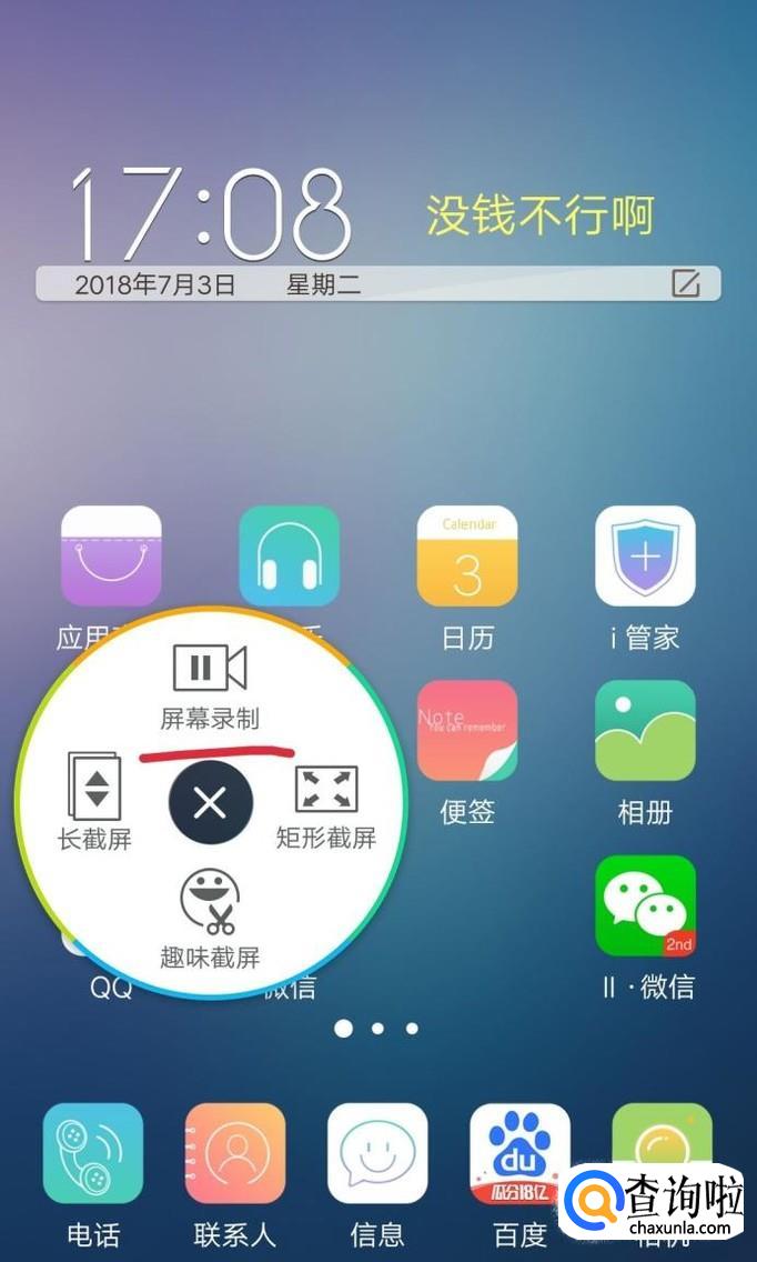 首先这个需要有一个录屏软件,但是很多人苹果手机都是直接可以录屏的,我的vivo手机也可以,调出方法就是任务栏……超级截屏……屏幕录制,如下图。