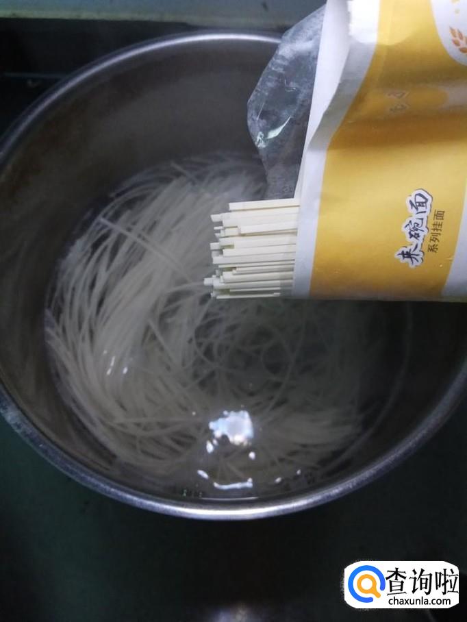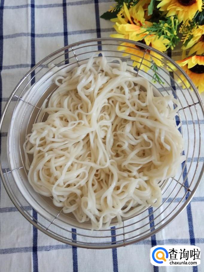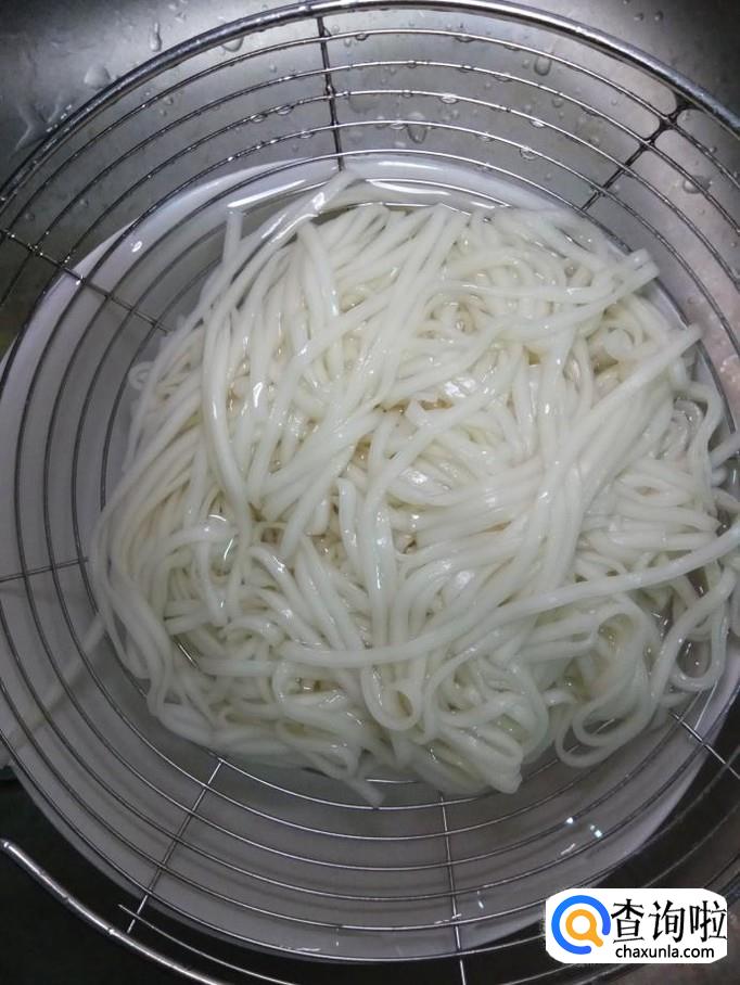 水烧开后,下入适量挂面,捞出过凉水,控干水分。