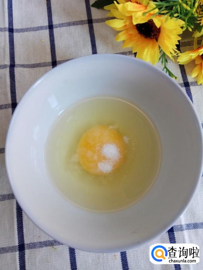 碗中打入一个鸡蛋,加入适量盐,打散备用。