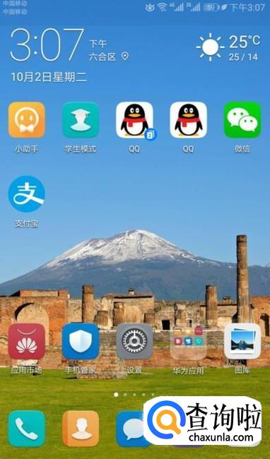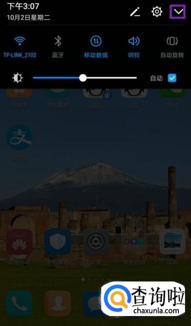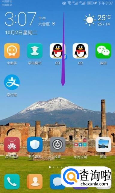 首先,我们打开我们的手机,然后我们在手机桌面上方下滑一下;