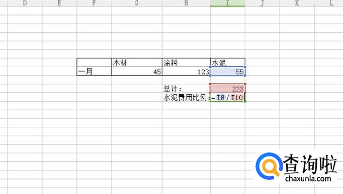 I8为分子所在单元格,I10为分母所在单元格,/为除以的意思
