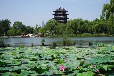 这幅楹联将济南风光特征概括得恰到好处,吸引了大量的游客。“四面荷花”是指作者一进入大明湖,映入眼帘的全都是荷花,顿时令人眼花缭乱,同时伴随着还有荷花淡淡的清香。作者顺着大明湖走了一段时间,面前出现一片柳树,正所谓“万花丛中一点绿”,更是让作者眼前一亮,心情不禁大好。