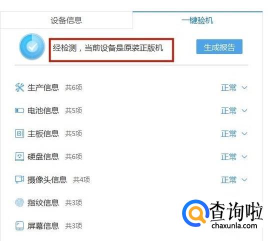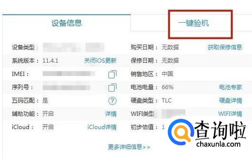 然后点击一键验机,如下图所示。