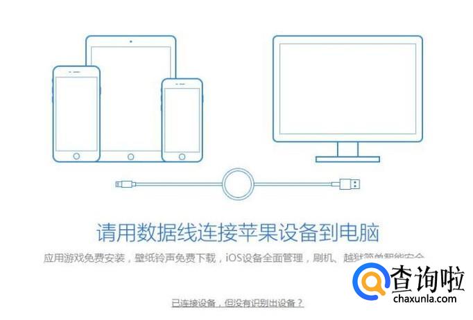 然后根据软件提示用数据线将我们的手机和电脑连接起来,如下图所示。