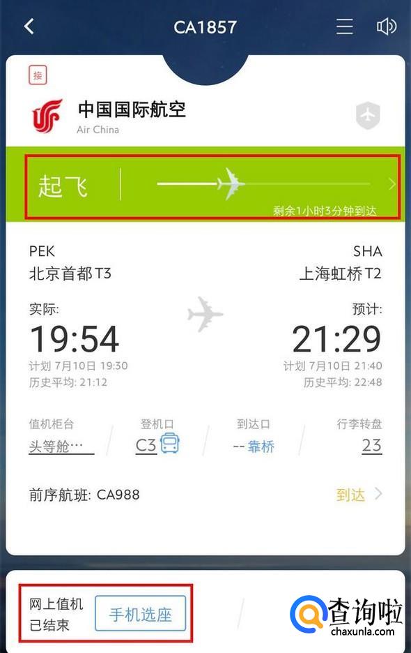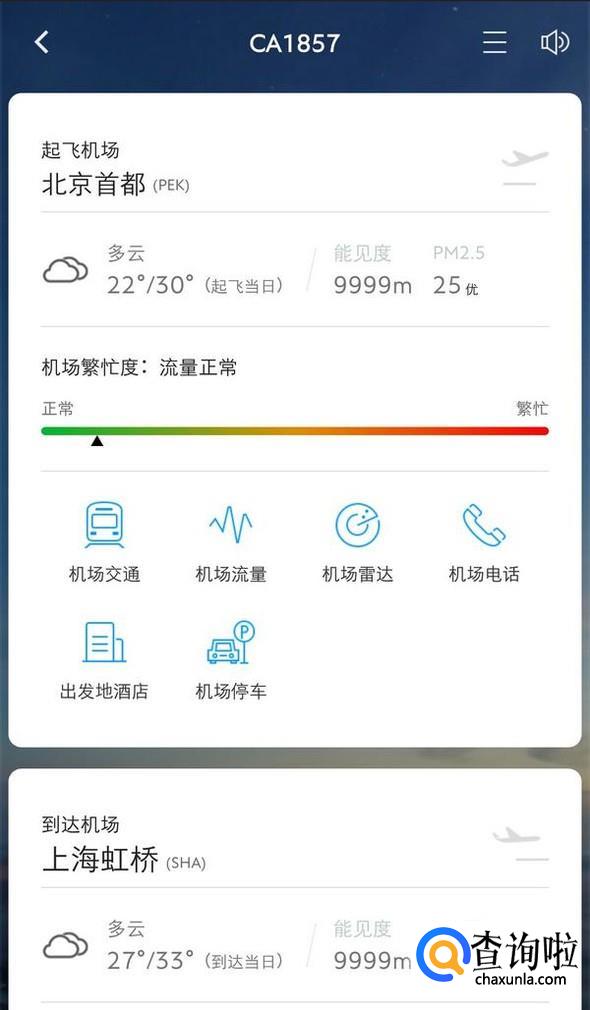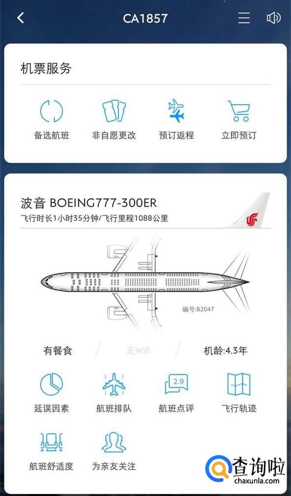 添加好以后,该航班的信息就全部展现出来了,包括航班状态、航班基本信息、网上值机、机票服务、飞机信息以及机场的基本信息;