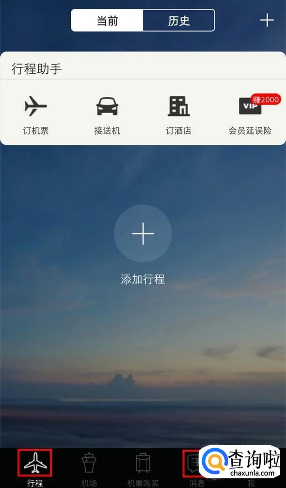打开软件,首页便是“行程”,点击屏幕中间的“添加行程”;
