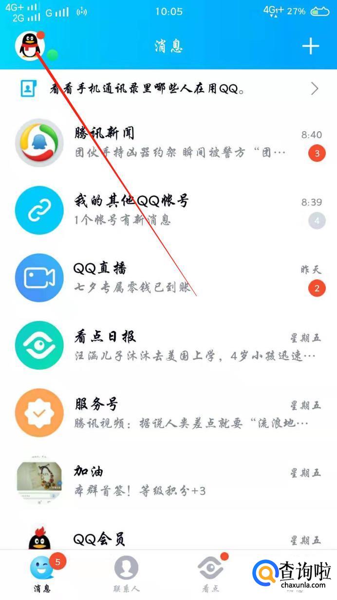 打开手机QQ,点击左上角的头像。