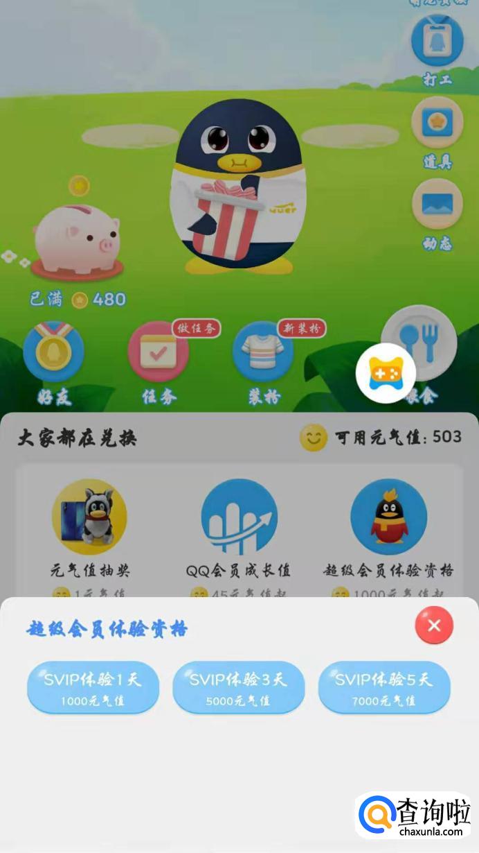 可以看到通过玩“超级萌宠”游戏元气值达到1000就可以兑换超级会员体验资格了。