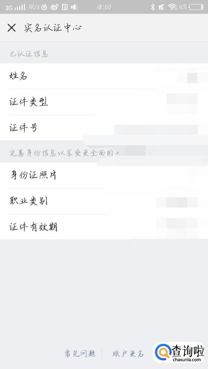 你会看到出现一个新的界面,点击“实名认证”选项,如图1箭头所示。将你的身份证号码自己身份证等信息填写上传就可以了。如图2所示。