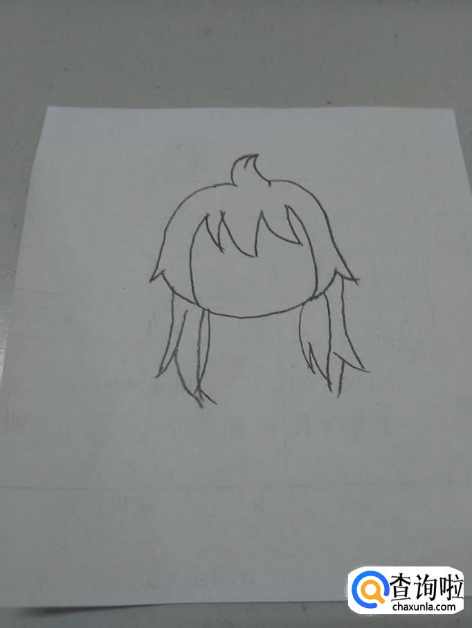 从头发往下,两侧再画一层锯齿形状,这是少女垂下来的长头发。