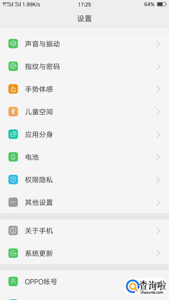 首先进入OPPO手机设置,找到“OPPO账号”这个选项,点击进入。