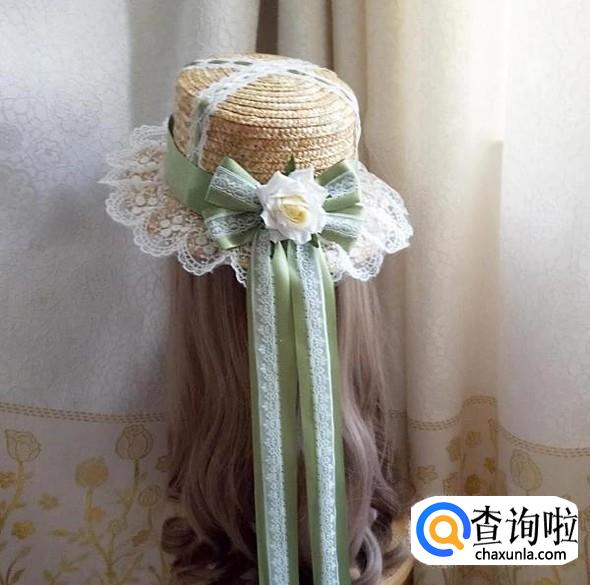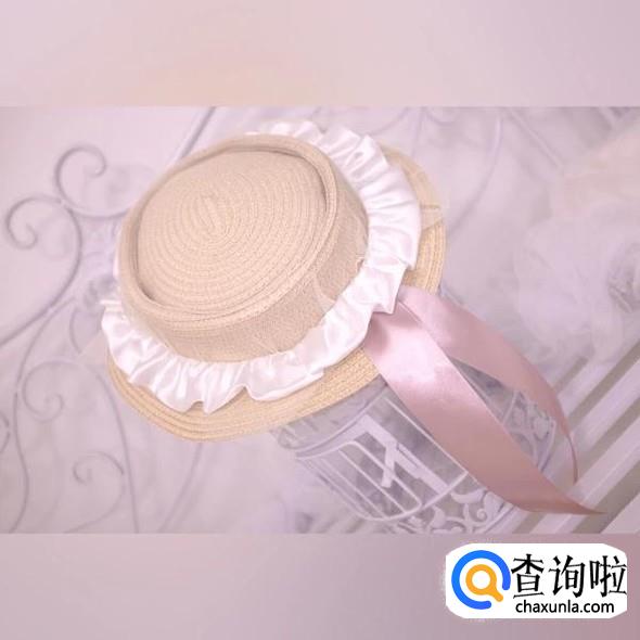 帽子上有木耳边的设计,加上飘带,少女感满满。帽子表面还罩上了一层薄纱,很美。
