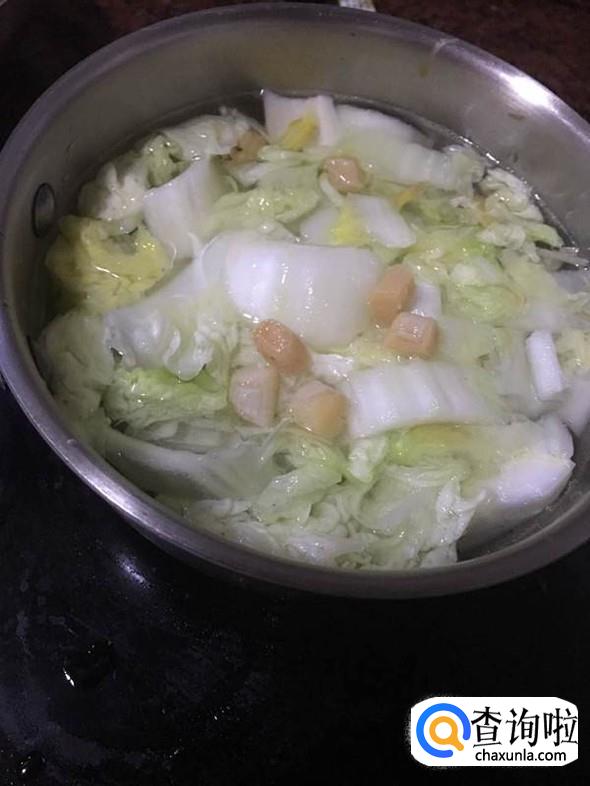 1,白菜半颗 2,肉酱适量 3,干贝适量 4,香菜少许 5,盐少许 6,姜