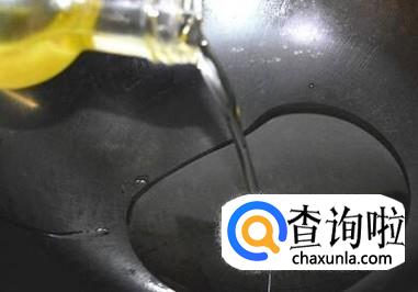 然后开始热锅,并倒入食用油,等油热了之后,放入辣椒碎。