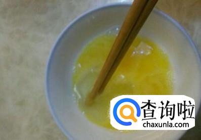根据辣椒碎的量来准备适量的鸡蛋,并把鸡蛋搅拌均匀。