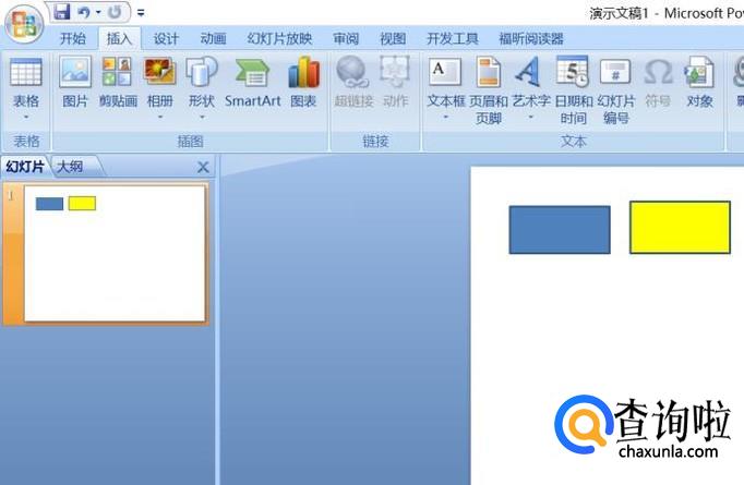 首先,我们打开我们点击上面的ppt,然后我们在里面插入两个长方形,且颜色不一样;