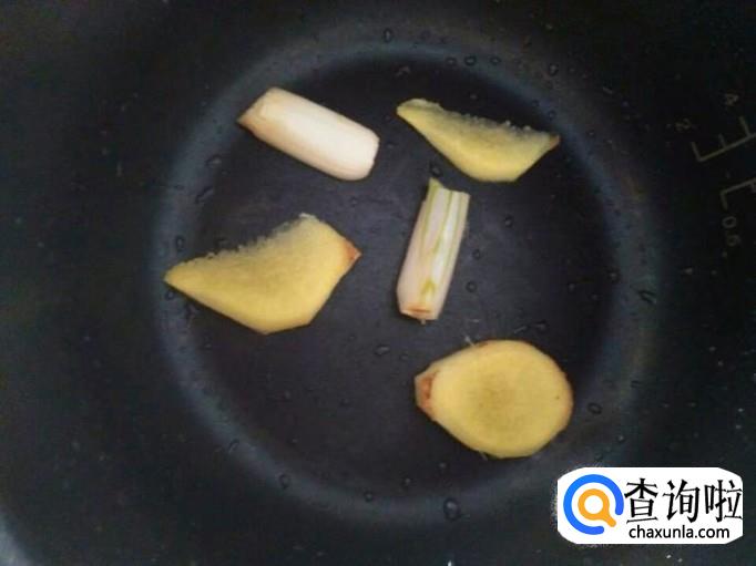 电饭煲清洗干净,放上几片去皮的生姜和葱段。