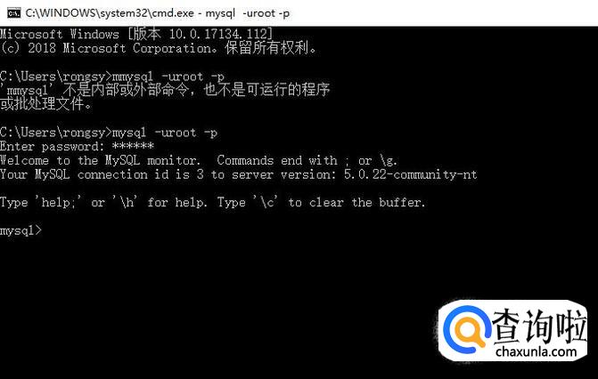 在打开的CMD命令行中我们输入mysql命令,注意-u代表的是登录用户,-p代表的是登录密码,如下图所示