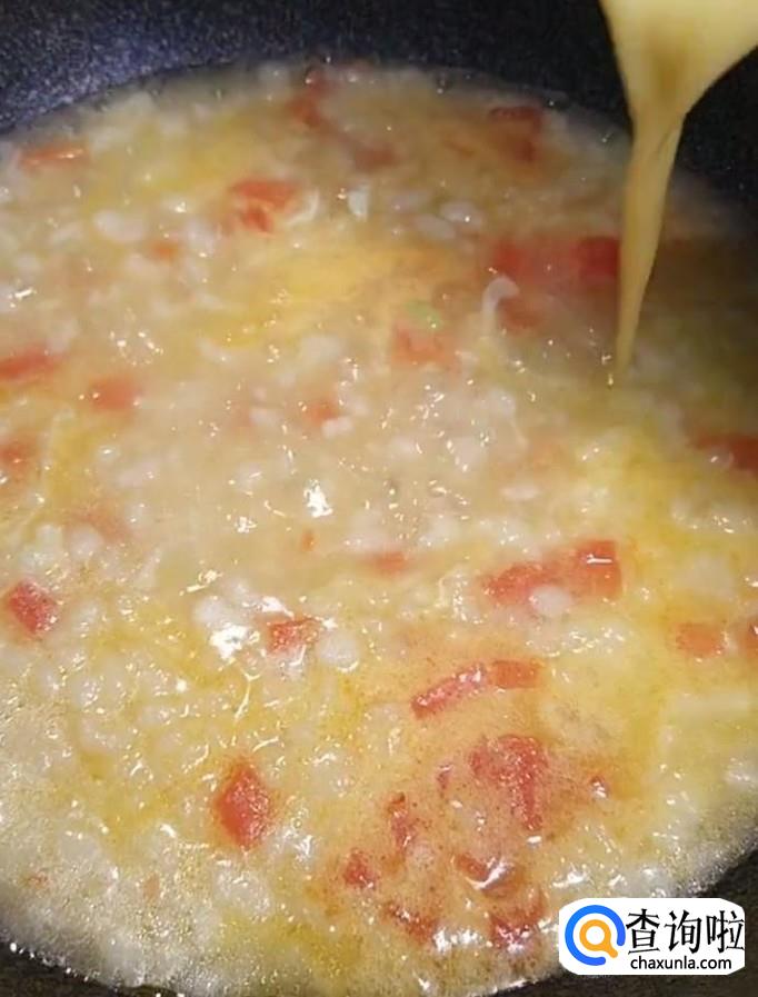 然后我们加入适量的盐,鸡精,把一个鸡蛋搅散,倒入锅中