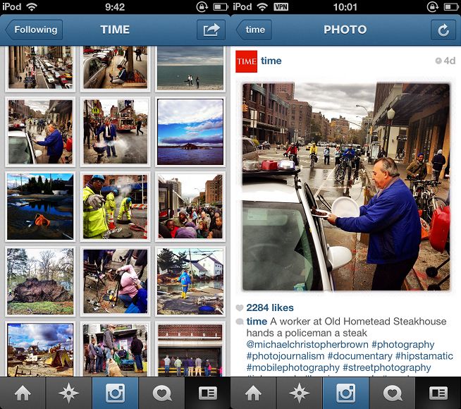 Instagram提供的主要功能流程为拍照--滤镜特效(以lomo风为主的11种照片特效)--添加说明/添加地点--分享(可以共享到Twitter、Facebook、Tumblr、Flickr以及Foursquare,甚至新浪微博这些主流社交网络)。同时Instagram基于这些照片建立了一个微社区,在这里你可以通过关注、评论、赞等操作与其他用户进行互动。