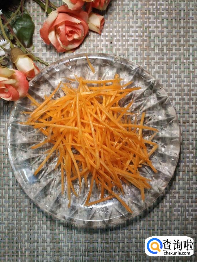再准备适量胡萝卜,洗净去皮后,用擦板擦成丝,这个量可以少一点。