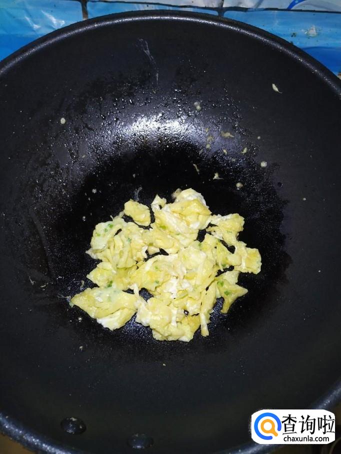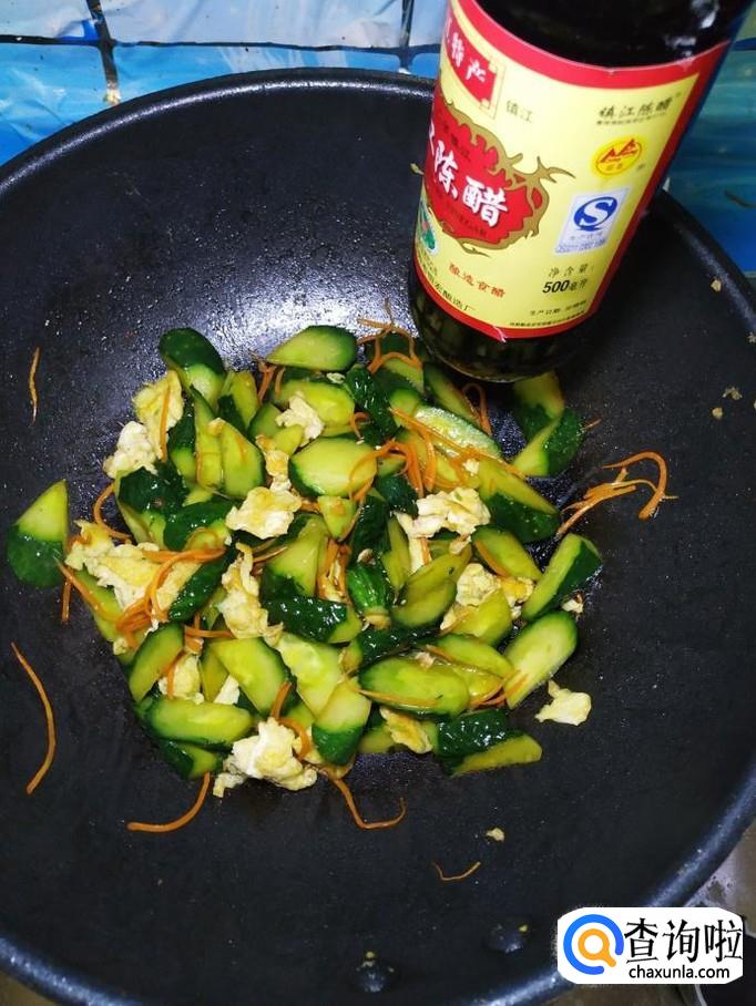 将之前炒好的鸡蛋放入锅中,一起翻炒,出锅前加入少许陈醋提鲜。