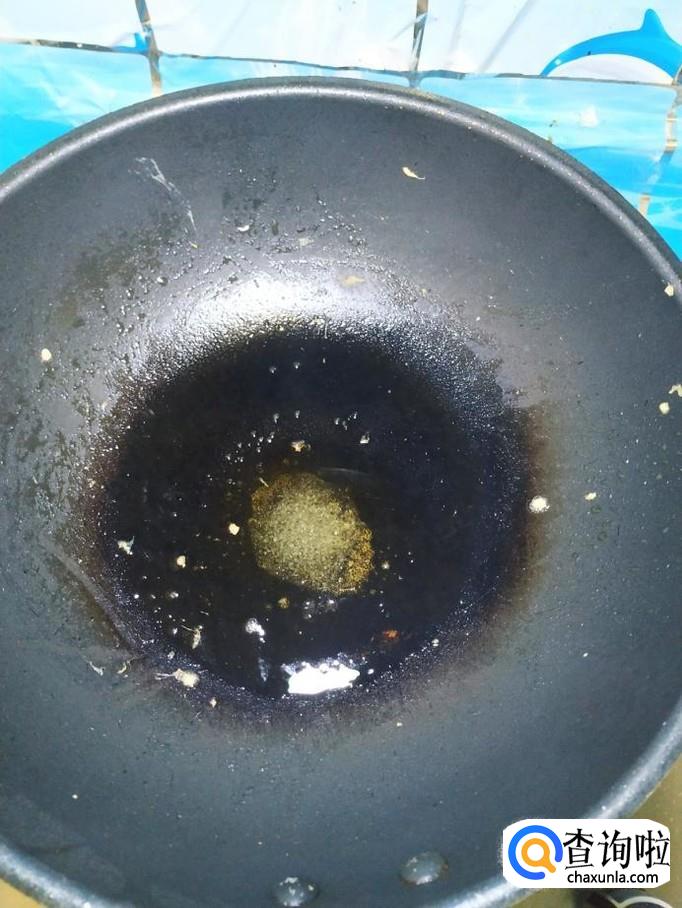 炒锅中再放入少许油,油热后放入一勺白砂糖,炒出糖色后,将黄瓜倒入锅中,翻炒均匀。