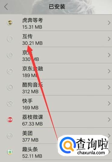进入之后,找到在桌面位置看不到图标的软件,点击并进入,以“互传”为例。