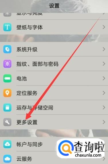 进入之后,找到“更多设置”,点击并进入,如图所示。