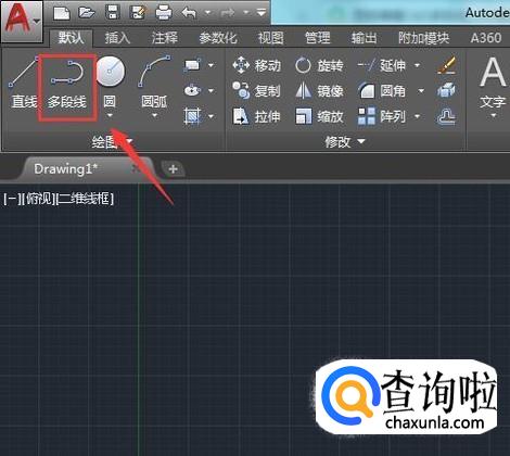 打开CAD之后我们在绘图里找到多段线选项,如图所示: