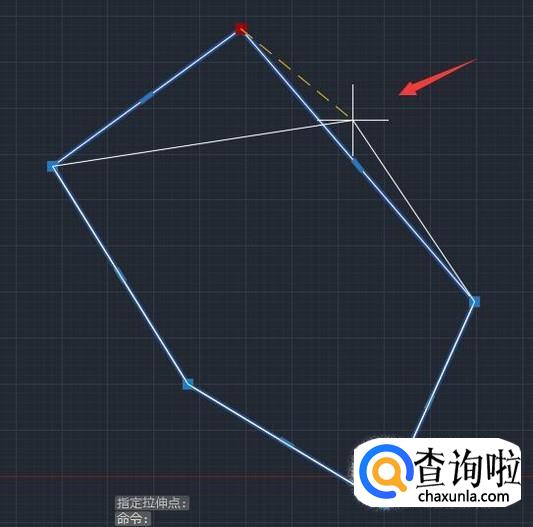 移动到合适的位置点击鼠标左键,然后再选择顶点上的夹点然后移动,可以看到顶点就跟着移动了,如图所示: