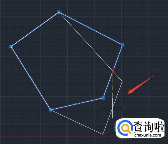 我们选择图形边上的夹点然后拖动鼠标左键,可以看到选择的边就会跟着移动,如图所示: