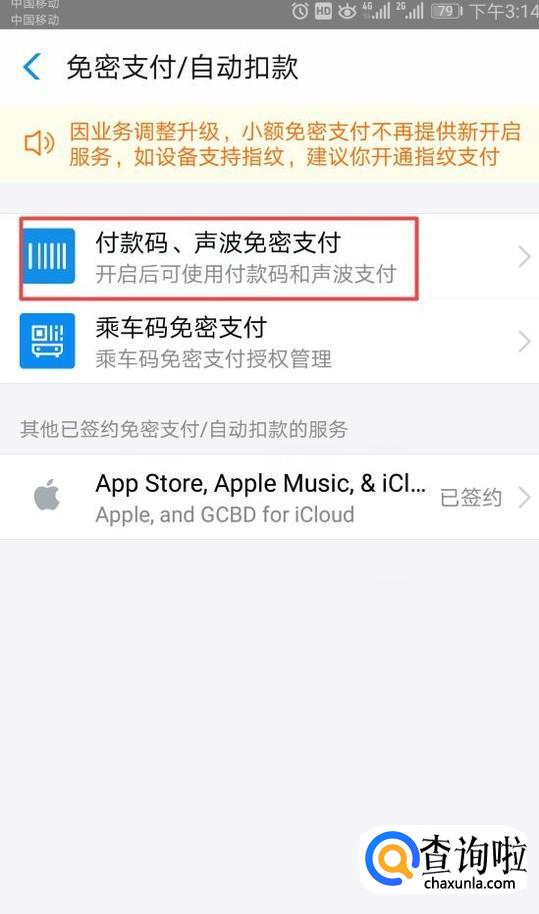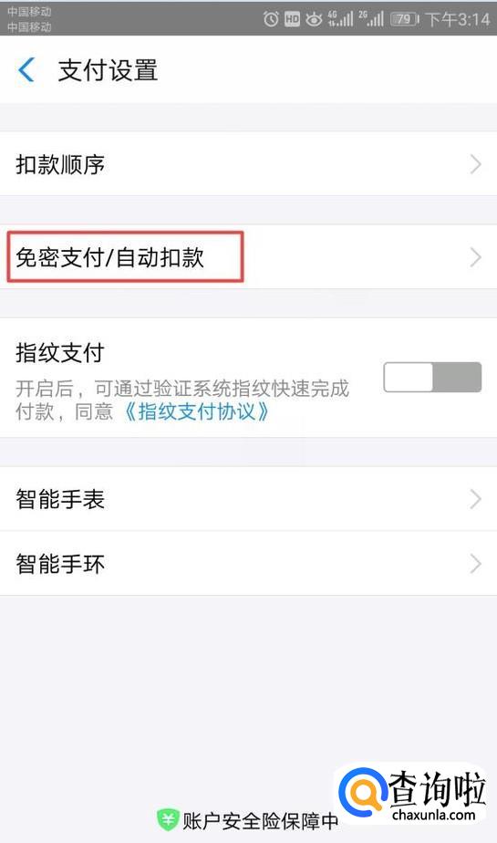 之后我们点击免密支付/自动扣款;