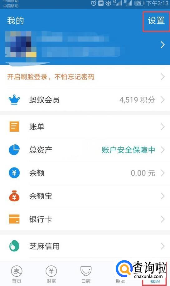 首先,我们打开我们的支付宝,然后我们点击我的,之后我们点击设置;