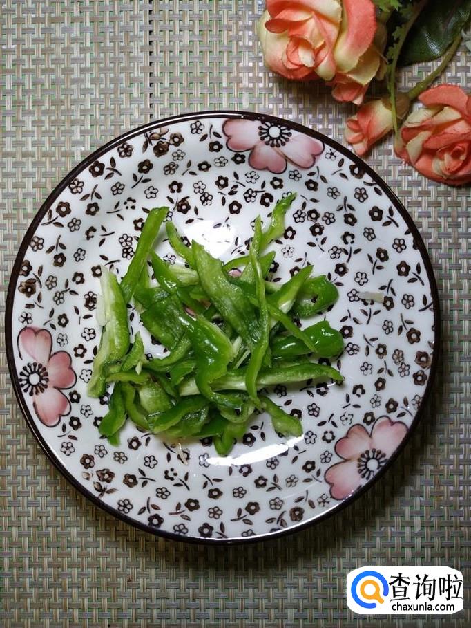 将豆干斜刀切成长条,将青椒也切成丝,因为黄豆芽是属于长条状的,所以其他食材最好也切成丝,这样更加好看。