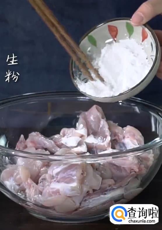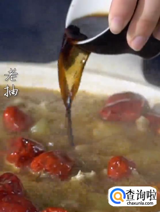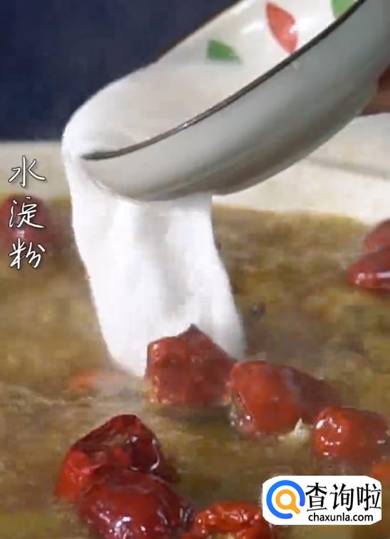 将牛蛙肉倒入锅中,下老抽,水淀粉,大火煮开。