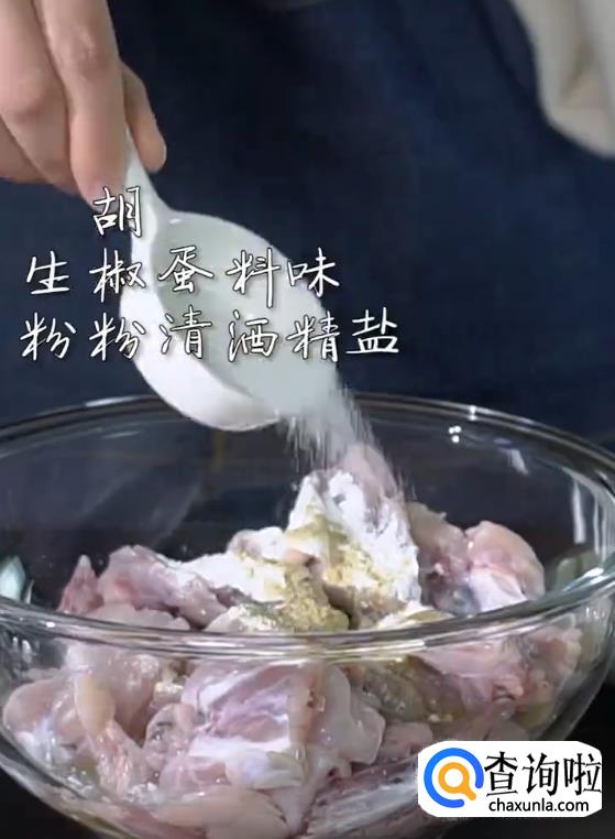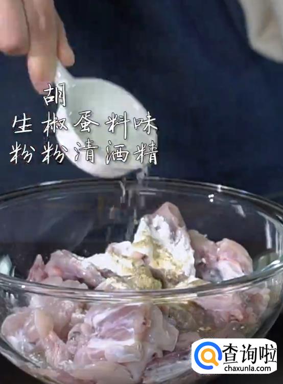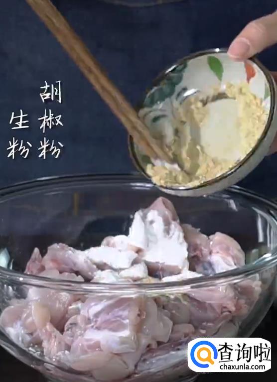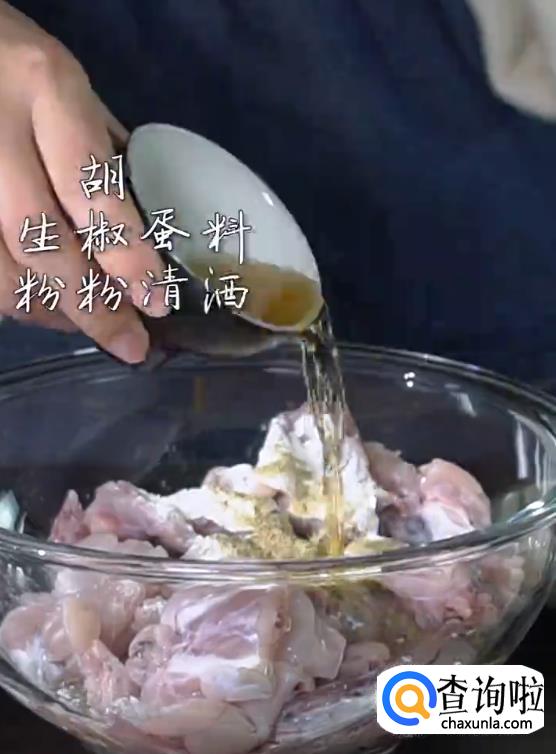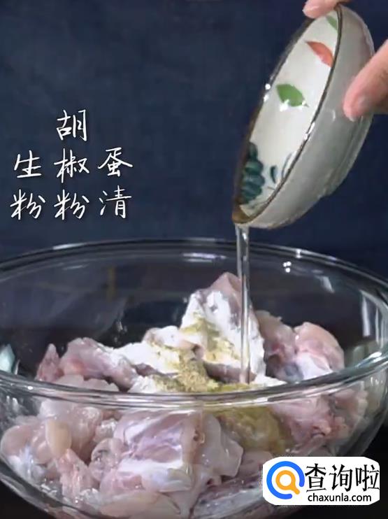 将清理好的牛蛙肉中加入生粉,生抽,胡椒粉,蛋清,料酒,味精,盐巴搅拌均匀腌制。
