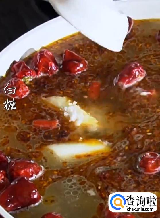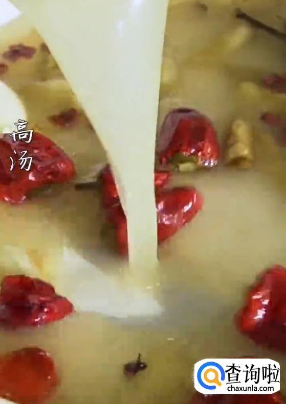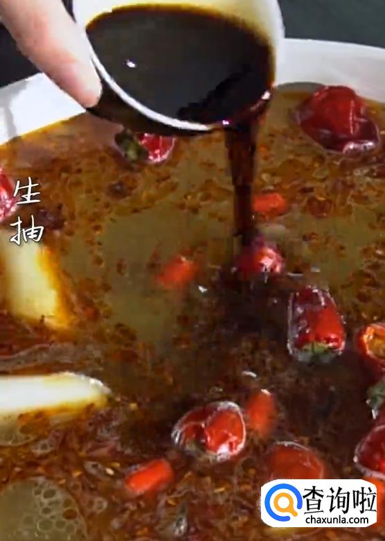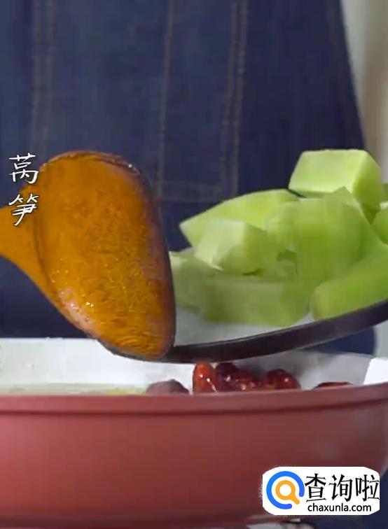 倒入高汤,下莴笋,加辣油,生抽,白糖,盐。