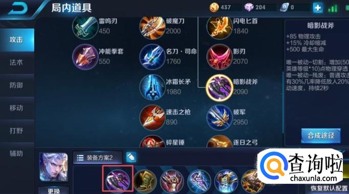 铠这名英雄一般可以直接作为战士进行出装或者作为打野位进行出装,总体来说,直接作为上单战士是比较适合的,因为毕竟铠不是刺客,首先,我们第一件装备可以出暗影战斧,这件装备可以加一定的血量,其次可以增加攻击力,然后还有技能缩减的效果,这样我们在上单的时候就不容易死掉,非常的实用。