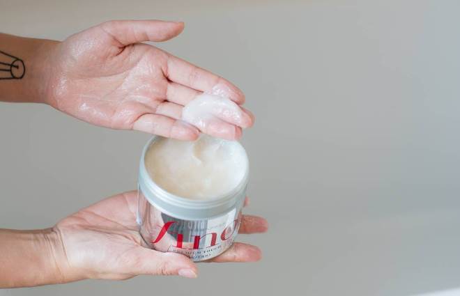 2、将护发素倒在手上,油性发质使用少一点,干性发质使用多一点。将手上的护发素轻轻地抹在头发上,最好能够把头发分成几束,然后从上到下一束束的摸匀。或者梳在头发上以后再取一些护发素放在掌心里,轻轻的搓一下然后抹在发尾上,因为发尾是最容易干燥毛糙的地方。