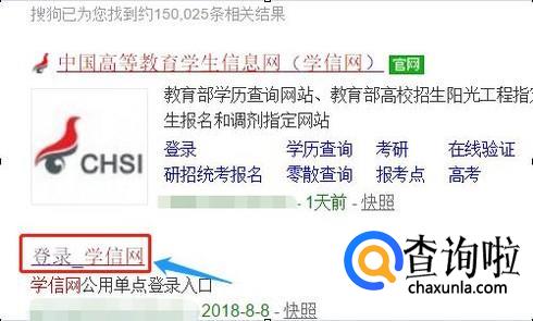 首先我们通过搜狗搜索“学信网”,然后排在前两位的都是学信网的官网,只不过如果我们属于首次查询的话,那就只能去如图二所示的网站进行注册了;