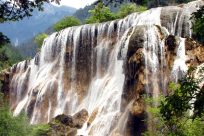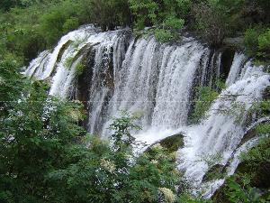 九寨沟瀑布群,主要有诺日朗瀑布、树正瀑布和珍珠滩瀑布组成,此外还有若树正群海间的梯瀑群等无数小瀑布。