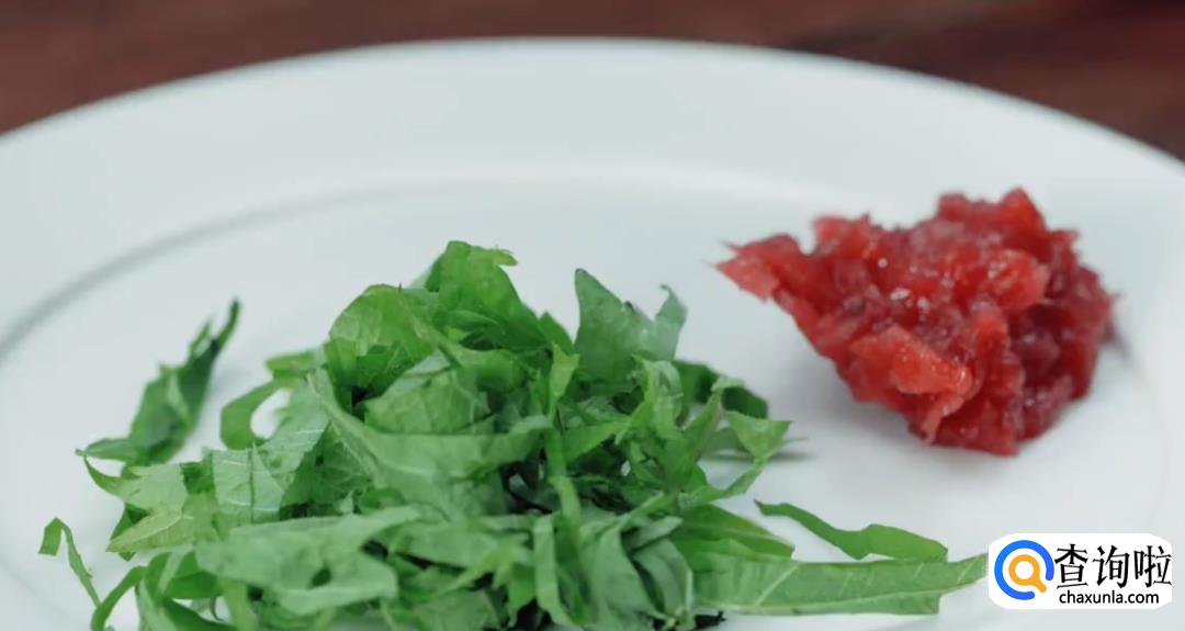 紫苏叶切丝,梅子去核切碎。
