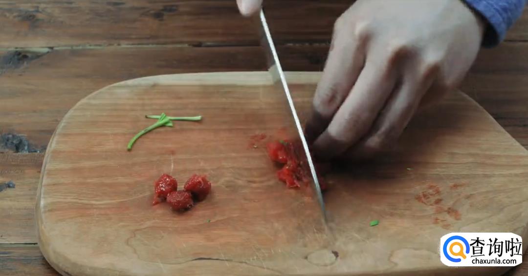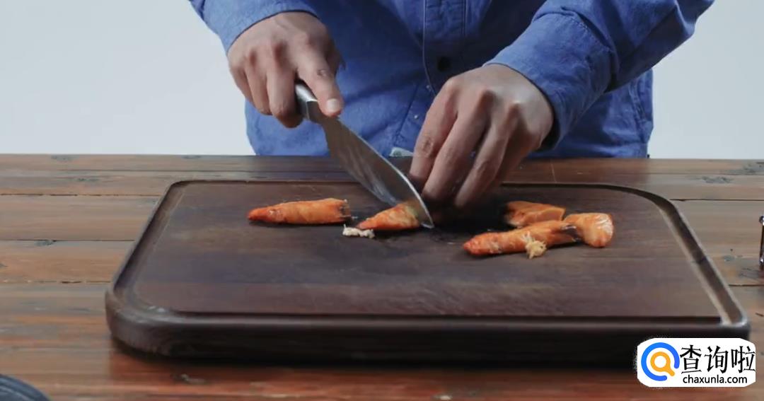 3、三文鱼选取靠尾部的肉,不要用腹部的,也可以用秋刀鱼替代。